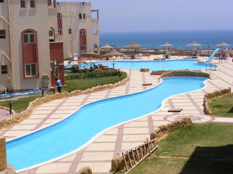- المرافق والخدمات: 6 حمامات سباحة وكافيتريا على البحر وسوبر ماركت وملعب كرة طائرة.